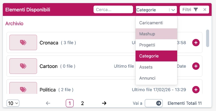 Centralizza immagini, video e risorse multimediali in un unico spazio, collegando archivi interni ed esterni per rendere ogni produzione più veloce, ordinata ed efficiente.