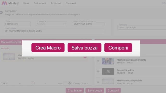 Composer applica queste regole per combinare automaticamente i contenuti disponibili, creando sequenze coerenti e sempre aggiornate.